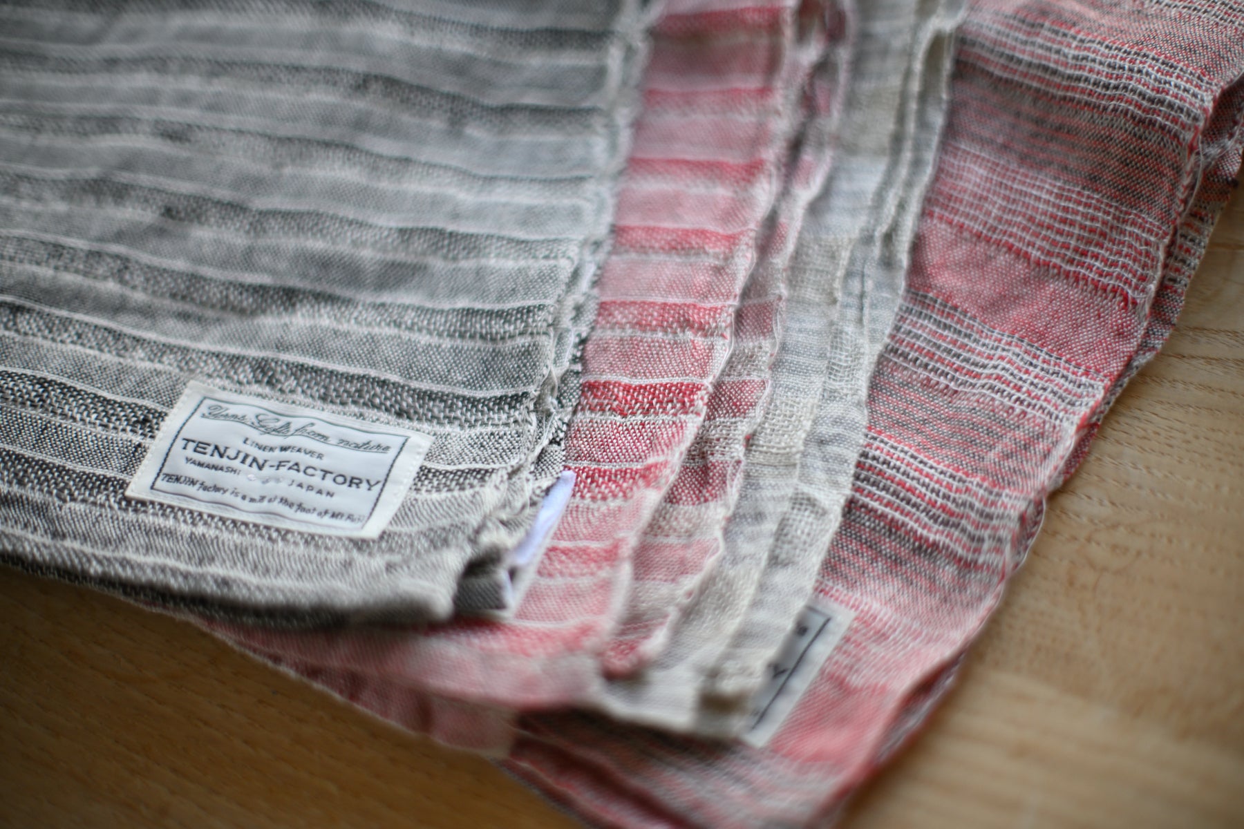リネンは元々ヨーロッパ由来のものですが日本の暮らしにあったリネンづくりをしたいと思っっています。その一つとして、ここテンジンファクトリーがある山梨県富士吉田は江戸から続く織物産地。その名前郡内をいただき、シックなストライプのリネン、郡内縞リネンが生まれました。