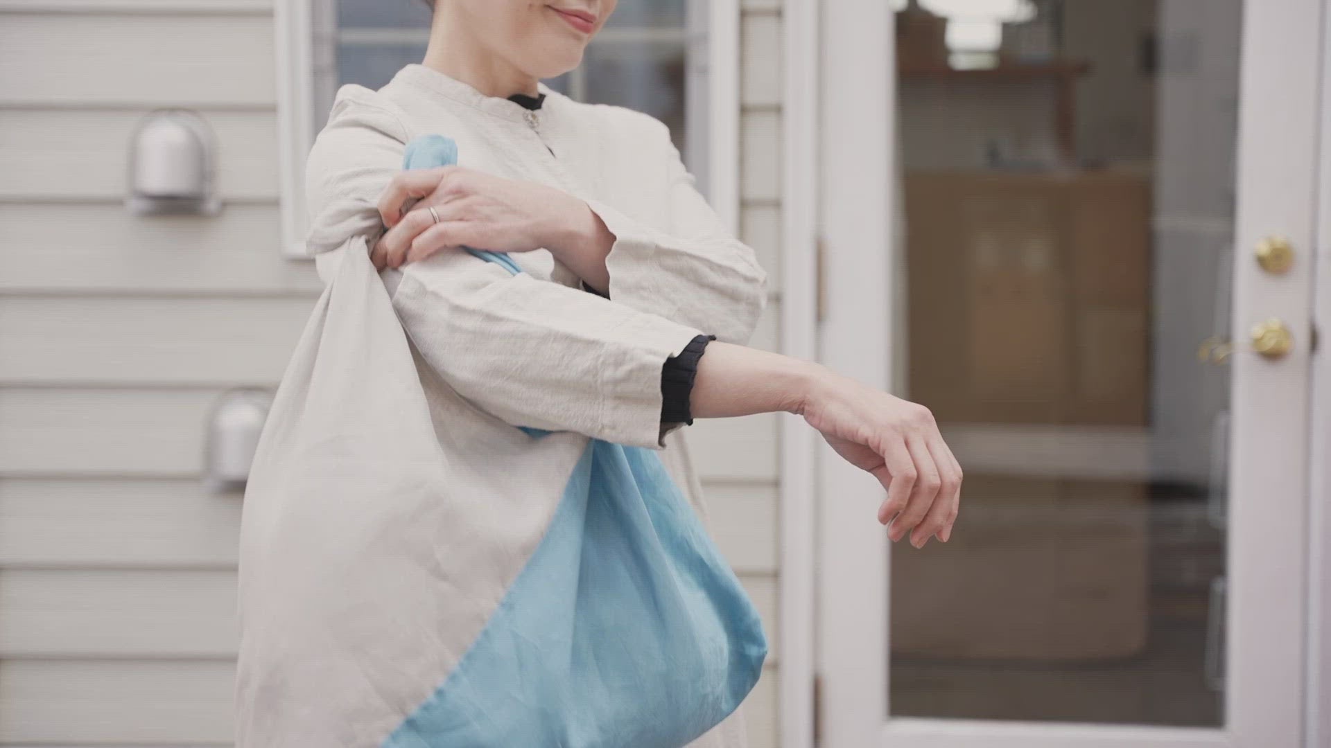 スカーフ用に先染めの糸で織り上げたテキスタイルを使用したデイリーバッグです。世界最高品質として知られるヨーロッパ産の亜麻を使用し、熟練の日本の職人が昔ながらのシャトル織機で丁寧に織り上げたテキスタイルです。大きな開口部で荷物の出し入れもスムーズ。肩掛けや手持ちも可能。バッグの中身に合わせてハンドルの位置を自由に付け替えられます。たっぷり入るので荷物が多い時も便利です。リネン100%なので気軽に洗えます。汚れたらすぐに洗えて、水に強く乾きも早いのでお手入れも簡単です。